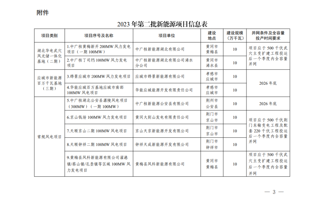 根据《省能源局关于探索开展新能源项目竞争性配置的通知》(鄂能源新能〔2023〕58号)要求,经企业申报、竞争排序、接网校核,现将纳入我省2023年度新能源开发建设方案的项目(第二批)公布如下。