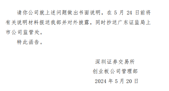 5月20日,深交所向易事特发出年报问询函。就公司2023年年报情况,深交所提出了一些问题。例如:请公司结合市场竞争、业务开发情况,补充说明高端电源装备、新能源行业收入变动的主要原因,并对比同行业可比公司说明变动趋势是否一致。补充提供“三北”地区主要业务内容及类别,并结合你公司区域布局变化情况,补充说明“三北”地区收入增加的主要原因及趋势。补充说明国外区域收入的主要业务构成情况,以及收入回款情况,说明是否存在与国内回款进度存在明显差异的情形,若是,请补充说明主要原因。