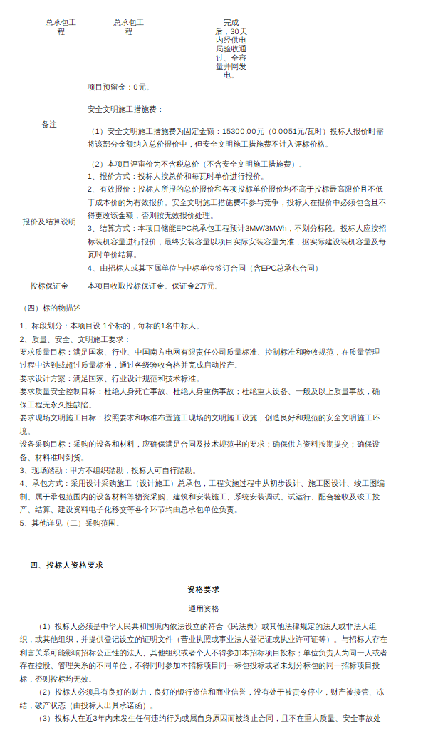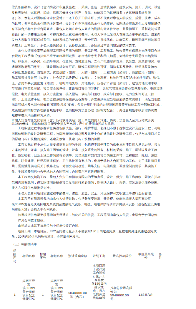 据储能界了解到,5月20日,南网发布揭西五经富镇30MW复合光伏项目配套储能EPC总承包工程(二次招标)招标公告。