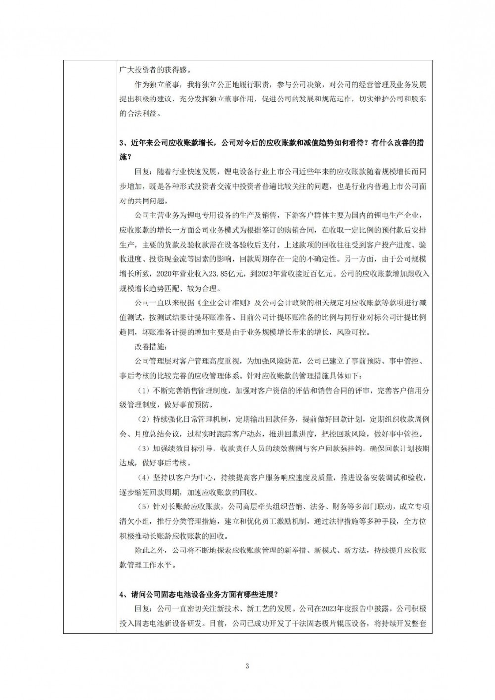 赢合科技表示,公司一直密切关注新技术、新工艺的发展。公司在2023年度报告中披露,公司积极投入固态电池新设备研发。目前,公司已成功开发了干法固态极片辊压设备,将持续开发整套干法固态极片制造系统。公司开发的湿法固态极片涂覆设备已成功发货到国内头部客户现场。