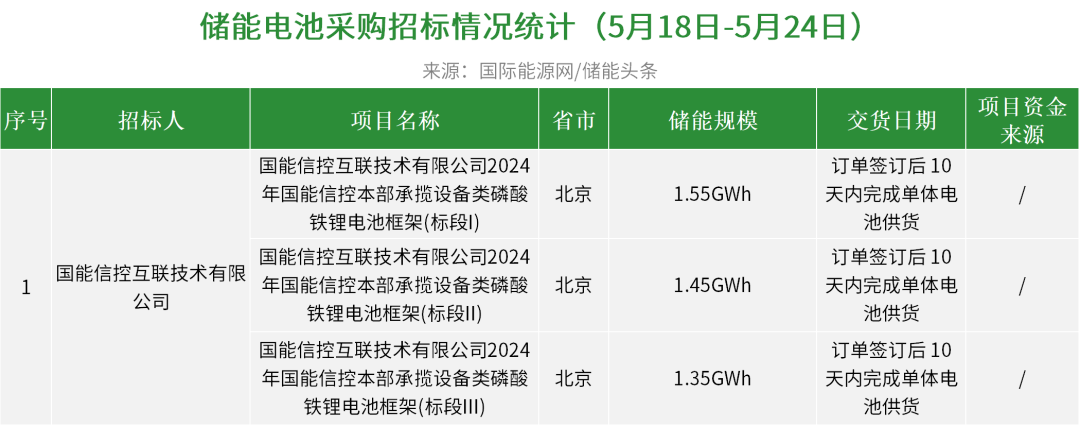 本周,《国能信控互联技术有限公司2024年国能信控本部承揽设备类磷酸铁锂电池框架(标段I-III)招标公告》发布。