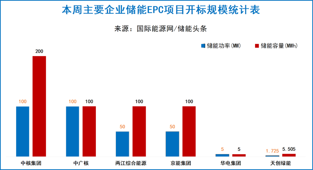 中核集团有1个项目开标,总规模为100MW/200MWh,中核五院中标;