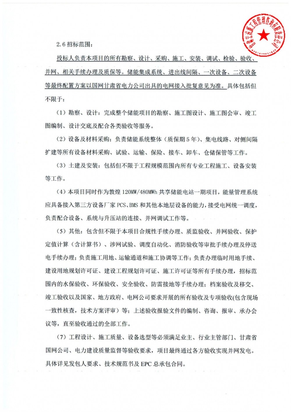 据储能界了解到,5月24日,甘肃敦煌200MW风储一体化项目配套储能部分进行EPC招标。
