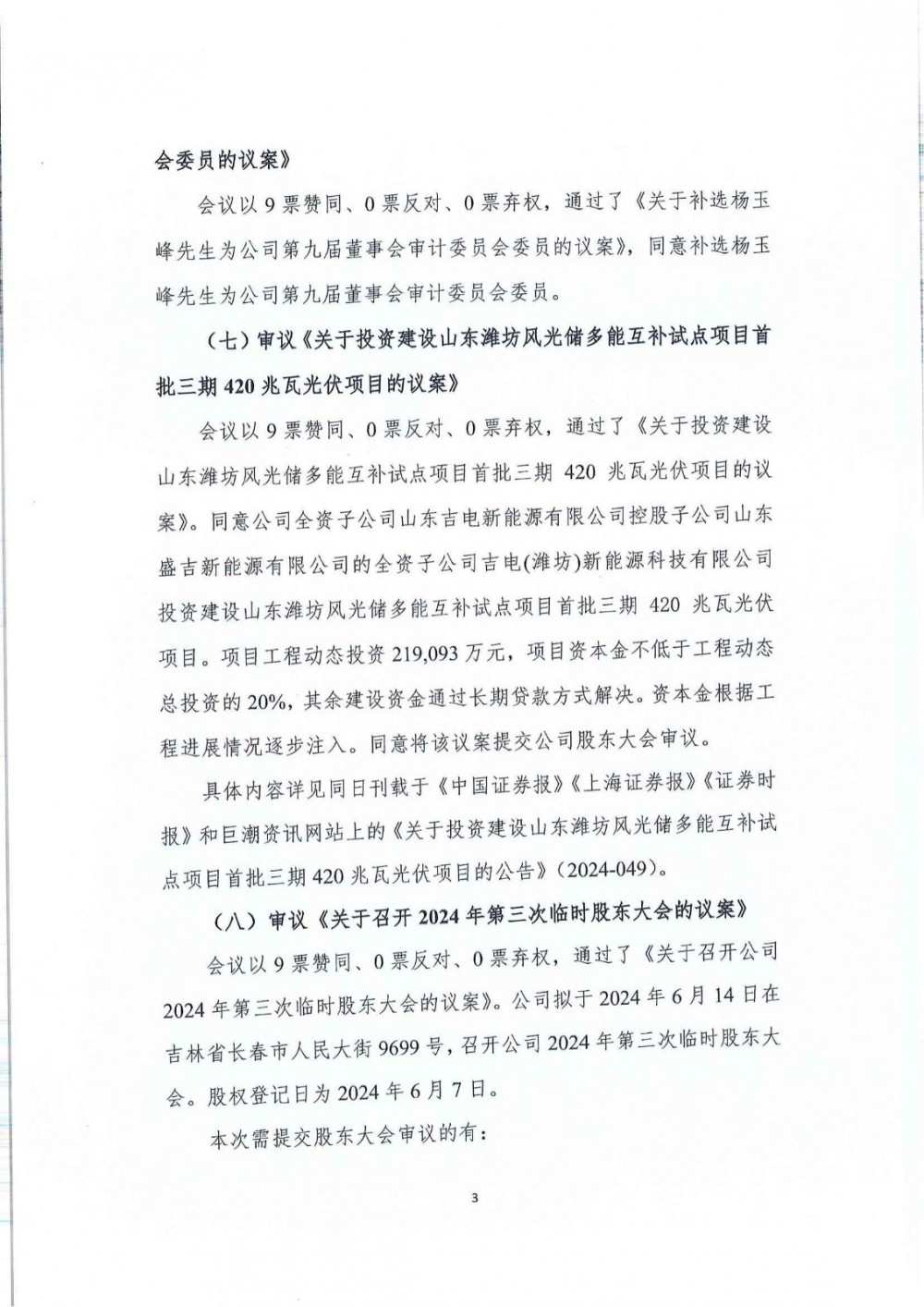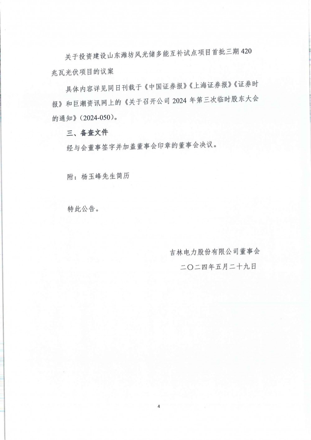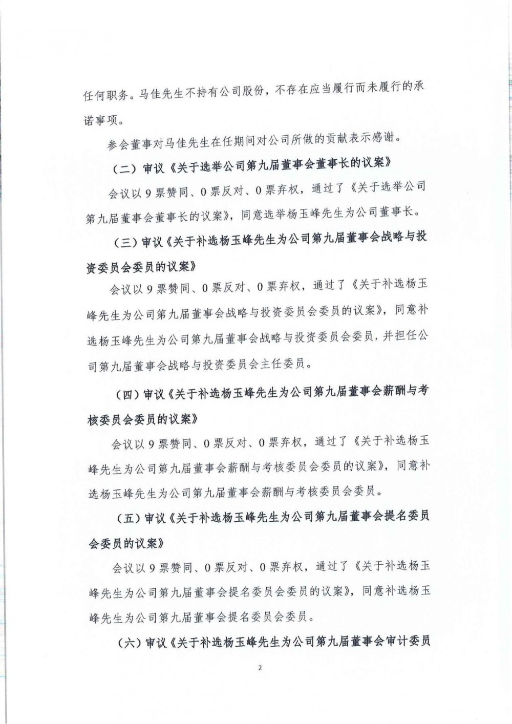 会议全票通过《关于选举公司第九届董事会董事长的议案》,同意选举杨玉峰为公司董事长。