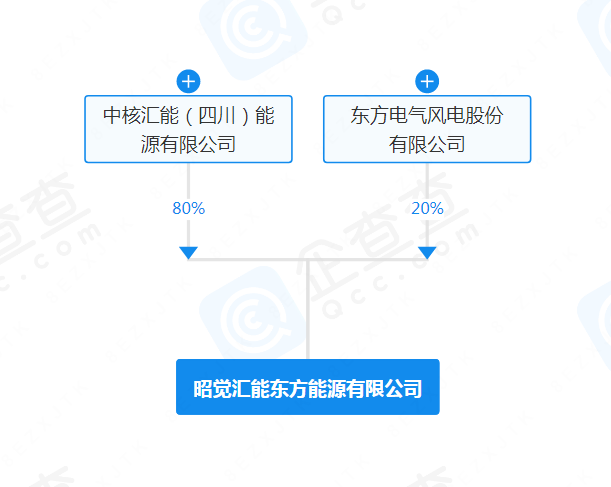 根据股权穿透显示,该公司由东方电气旗下东方电气风电股份有限公司、中核汇能(四川)能源有限公司共同持股。