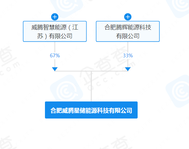 根据股权穿透显示,该公司由威腾电气旗下威腾智慧能源(江苏)有限公司、合肥腾辉能源科技有限公司共同持股。