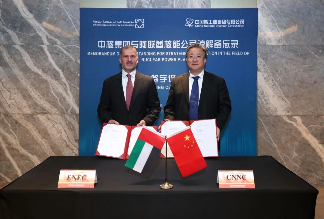 今年是中国与阿联酋两国建交40周年。5月30日晚,迅速响应当天下午国家主席习近平与阿联酋总统穆罕默德共同见证签署的关于和平利用核能的双边合作文件,中核集团董事长余剑锋在京会见了阿联酋核能公司董事总经理兼总裁哈马迪一行,双方签署了战略合作谅解备忘录(MOU),为巩固拓展中阿核能合作迈出重要一步。