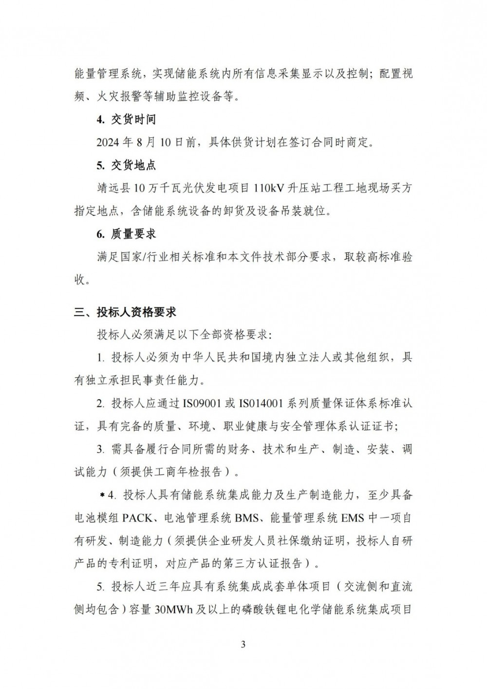 投标人近三年应具有系统集成成套单体项目(交流侧和直流侧均包含)容量30MWh及以上的磷酸铁锂电化学储能系统集成项目至少1个项目业绩(投运业绩)。