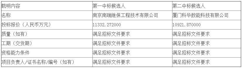 第一中标候选人为南京南瑞继保工程技术有限公司,总报价11332.272万元,折合单价0.354元/W;第二中标候选人为厦门科华数能科技有限公司,总报价10921.87万元,折合单价0.341元/W。