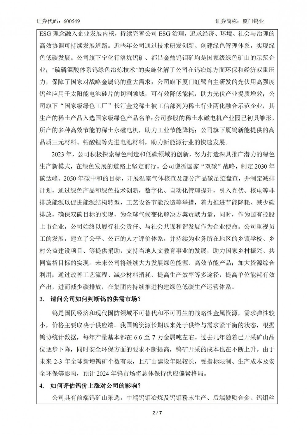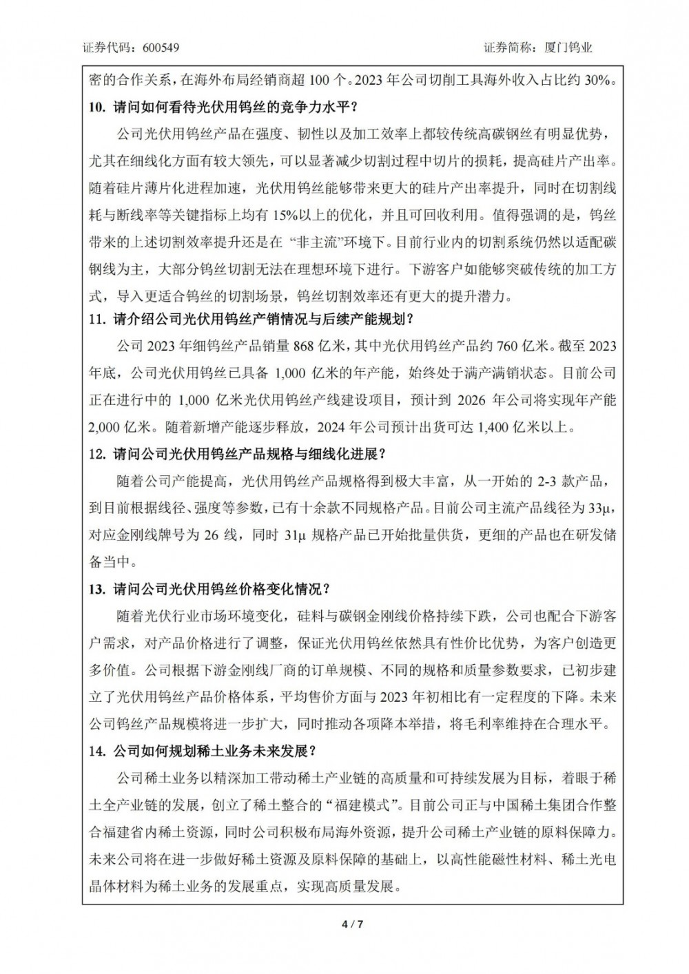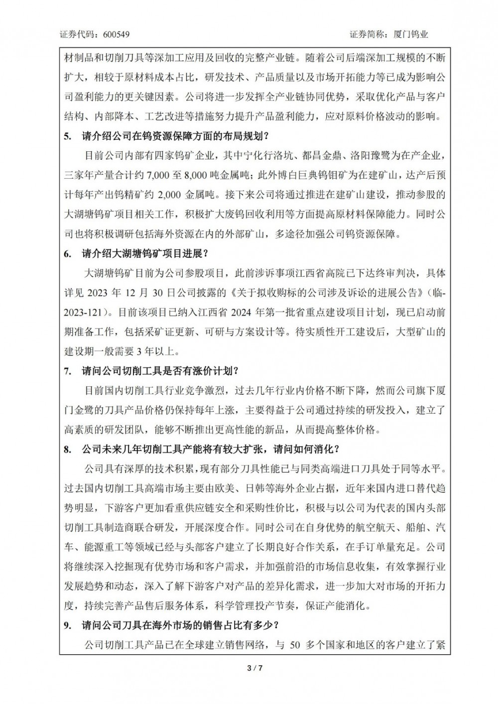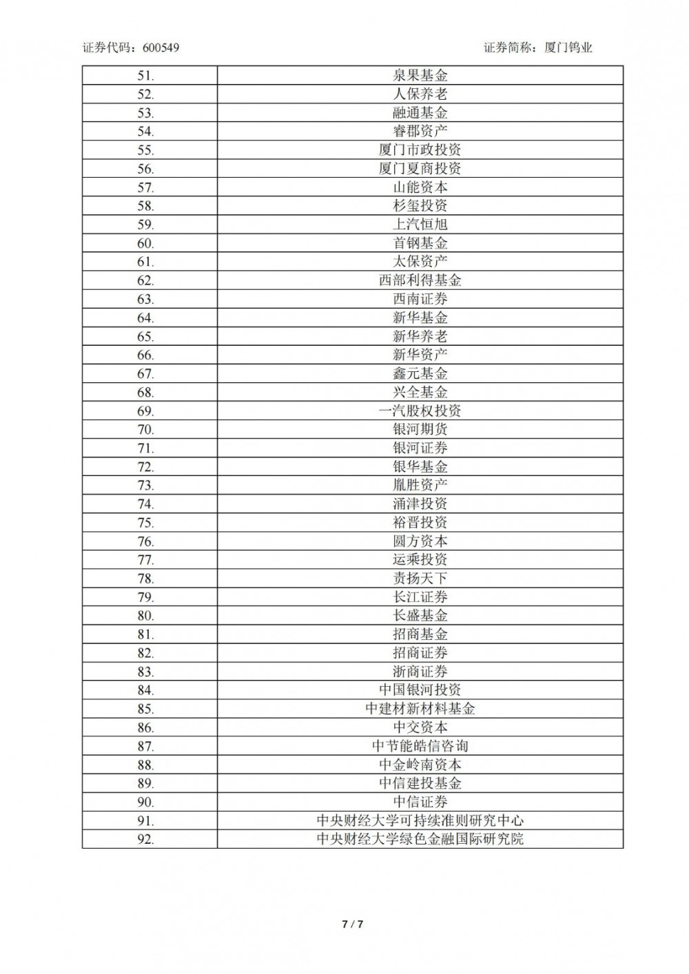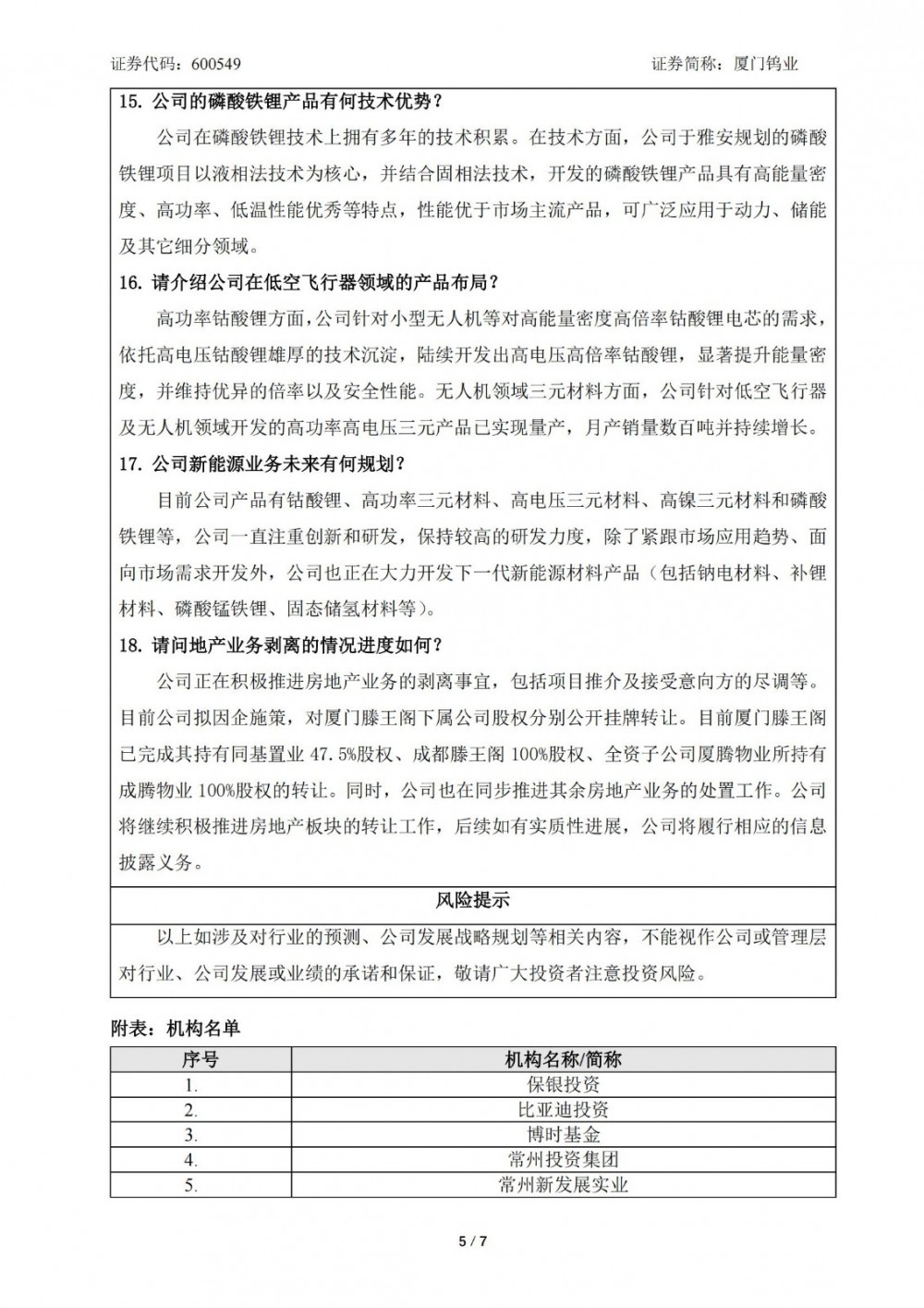 据储能界了解到,近日,厦门钨业发布投资者活动记录。
