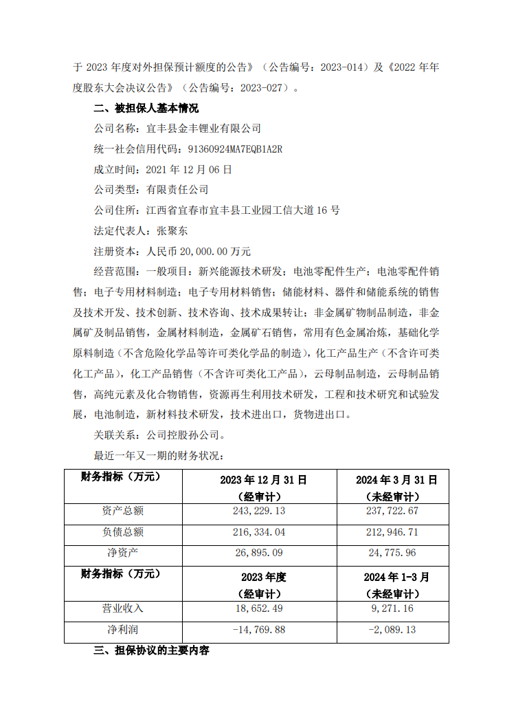 根据公告显示,截至本公告披露日,公司为金丰锂业提供的担保余额为80,280.88万元(不含本次担保余额)。