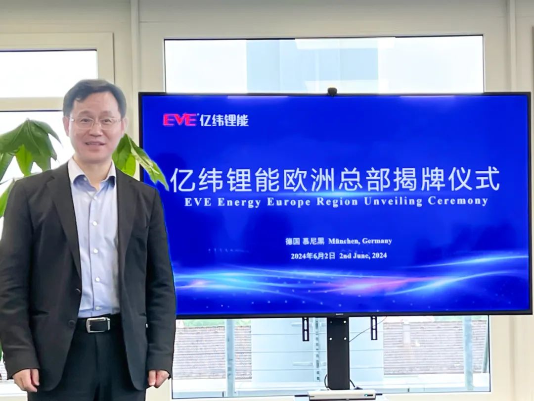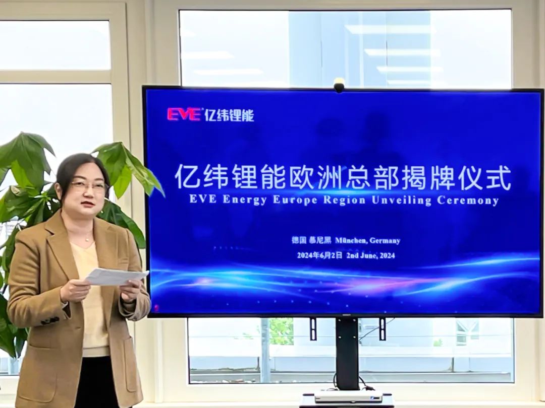 6月2日,亿纬锂能欧洲区域总部在慕尼黑正式揭牌成立,荆门市委副书记、市长陈家伟,亿纬锂能副总裁周红艳、亿纬德国公司总经理张锐博士等领导出席揭牌仪式。