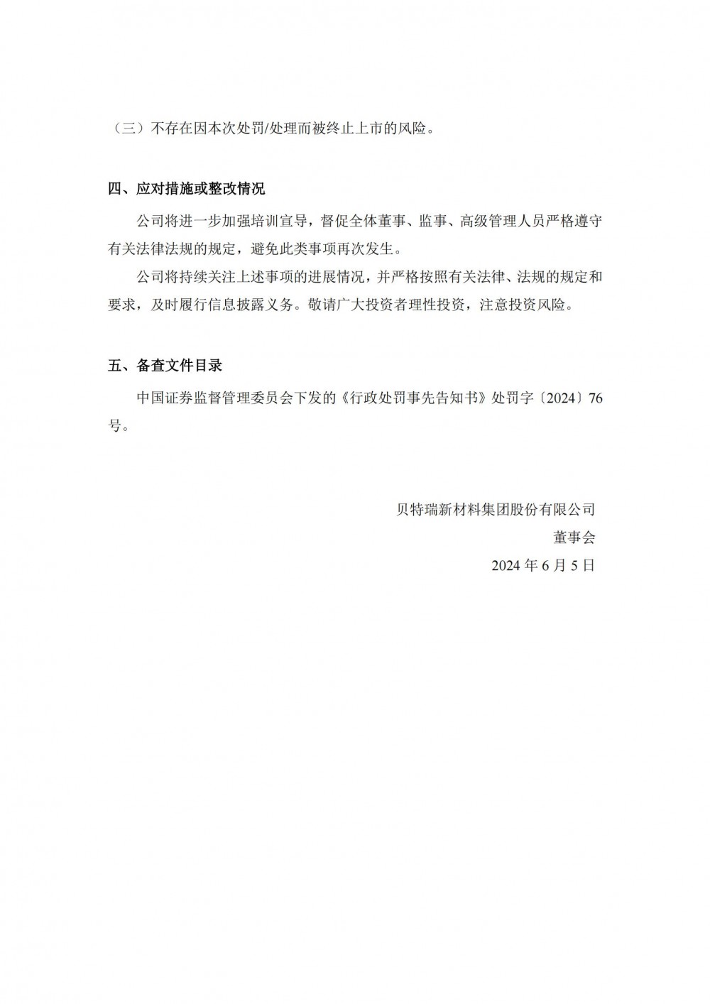 据储能界了解到,6月5日,贝特瑞发布公告称,公司收到董事长贺雪琴先生告知,其收到中国证券监督管理委员会出具的《行政处罚事先告知书》(处罚字〔2024〕76号),因涉嫌内幕交易“龙蟠科技”一案,中国证券监督管理委员会拟对其作出行政处罚。根据相关规定,其享有陈述、申辩和要求听证的权利。