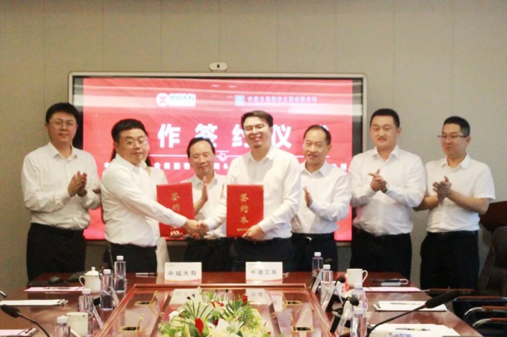 6月5日,中城大有董事长吴发福接待了中建三局数字工程有限公司总经理徐建中一行。双方就全面合作进行了深入交流座谈,并签署了《战略合作框架协议》。