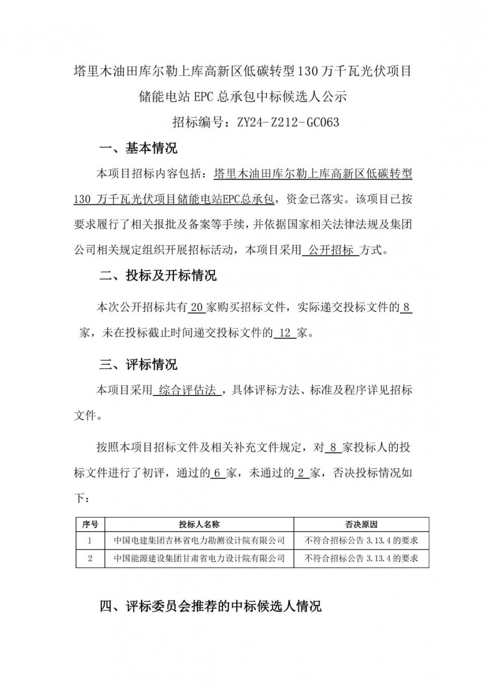 6月8日,中国石油发布了塔里木油田库尔勒上库高新区低碳转型130万千瓦光伏项目储能电站EPC总承包评标结果。
