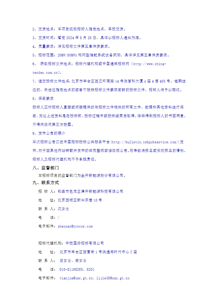 招标范围为20MW/80MWh构网型储能系统设备采购。