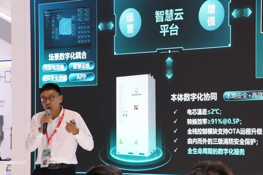 在SNEC盛会中,弘正储能不仅带来了前沿的新品展示,更通过干货满满的主题分享,向与会者展现了其在储能领域的深厚行业洞见。产品总监孟祥、南京数字化技术中心资深工程师余成,分别就数字化台区储能解决方案、工商业储能全生命周期管理等行业热点进行了深入解读。同时,他们还分享了弘正储能在产品研发、技术创新和市场拓展等方面的成果,为与会者提供了一场干货满满的知识盛宴。