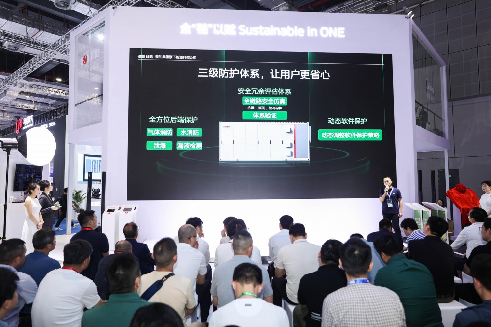 展会当天,科陆电子战略新品暨智能天平白皮书全球发布会隆重召开,吸引了众多行业观众和媒体代表的目光。会上,科陆电子储能产品总监王鹏详细分享了公司Aqua C系列新品,具有极致性能、极致安全、极致稳定、智能驱动等特点。搭载314Ah大容量电芯,采用20尺集装箱,标称容量达5.015MWh。通过优化电池模组集成,能量密度可达111.47Wh/kg,较一代产品能量密度提升21%,同时全生命周期可放电容量提升10%,进一步降低了系统的度电成本(LCOE)。新品采用先进的主动均衡技术,实现电芯-电池簇-电池箱全链路主动均衡,显著提升储能系统的整体性能和安全性,降低运维成本。同时,采用高效液冷温控策略,确保系统在极端环境下的高效稳定运行。新品的发布,标志着科陆储能产品线的全新里程碑,展现了科陆技术革新和产品持续迭代升级的坚定步伐。