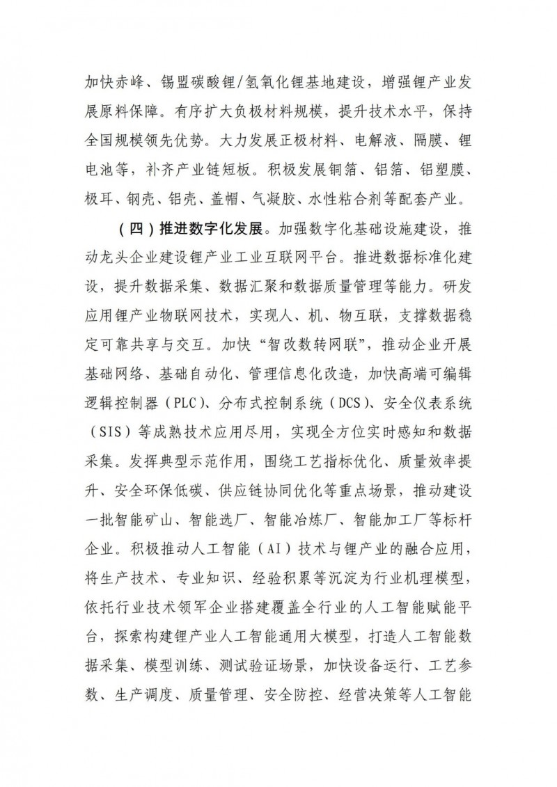 加强创新平合建设,推动重点企业联合高等院校、科研院所创建锂产业技术创新中心,支持企业技术中心建设,鼓励企业与国内外锂产业研究机构组建技术联盟,联合开展技术攻关