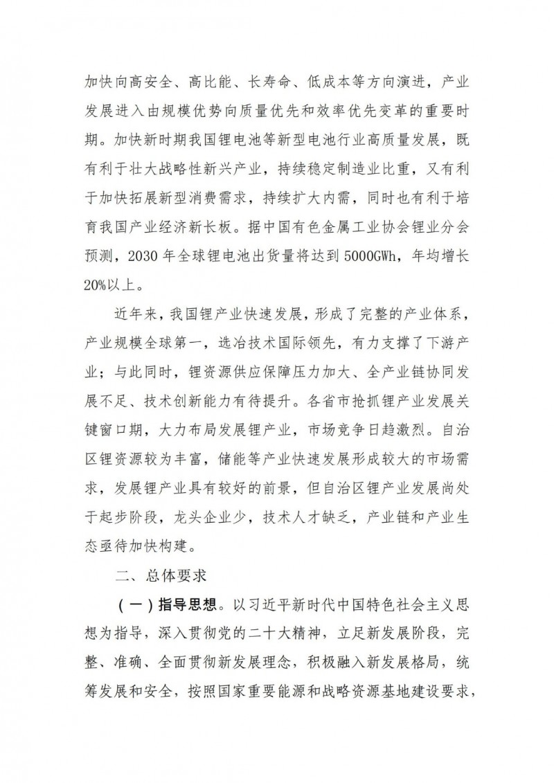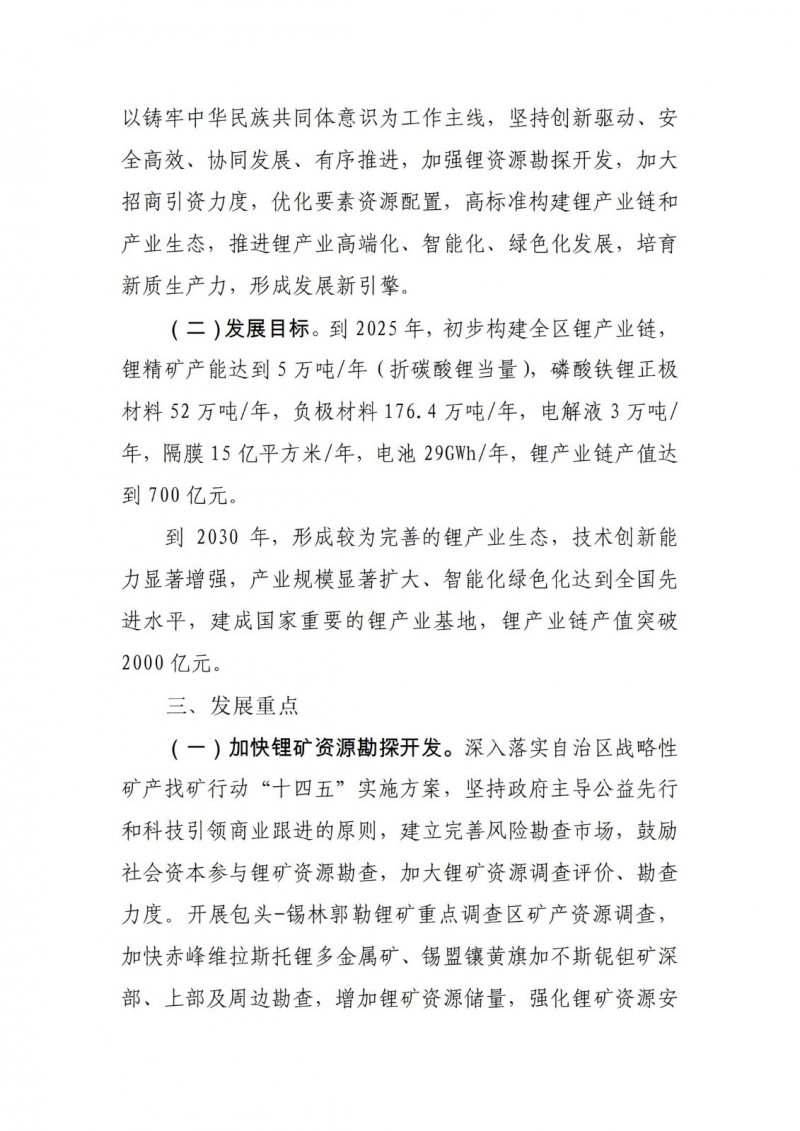 到2030年,形成较为完善的锂产业生态,技术创新能力显著增强,产业规模显著扩大、智能化绿色化达到全国先进水平,建成国家重要的锂产业基地,锂产业链产值突破2000亿元。